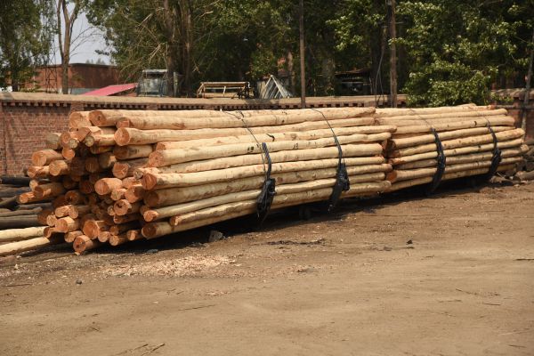 在電力工程場(chǎng)景中,15米防腐木桿的垂直荷載承載能力超過(guò)8噸,橫向抗彎強(qiáng)度達(dá)到1200N·m,完全滿足110kV以下輸電線路需求。其密度(0.45-0.65g/cm³)僅為混凝土桿的1/3,單根12米桿體運(yùn)輸成本可降低40%,特別適合地形復(fù)雜的山地林區(qū)施工。